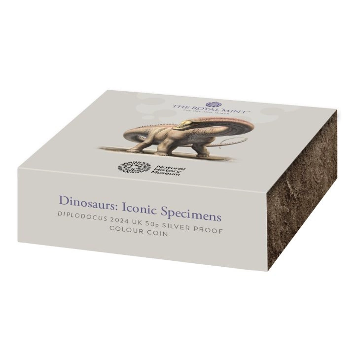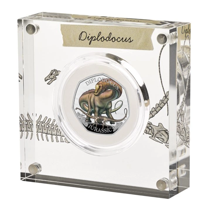 Dinosaures : spécimens emblématiques - Diplodocus coloré 50 pence en argent 2024 Proof