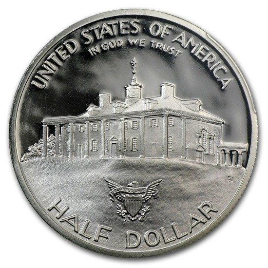 Le revers est orné de la façade est de Mount Vernon, la maison de George Washington.