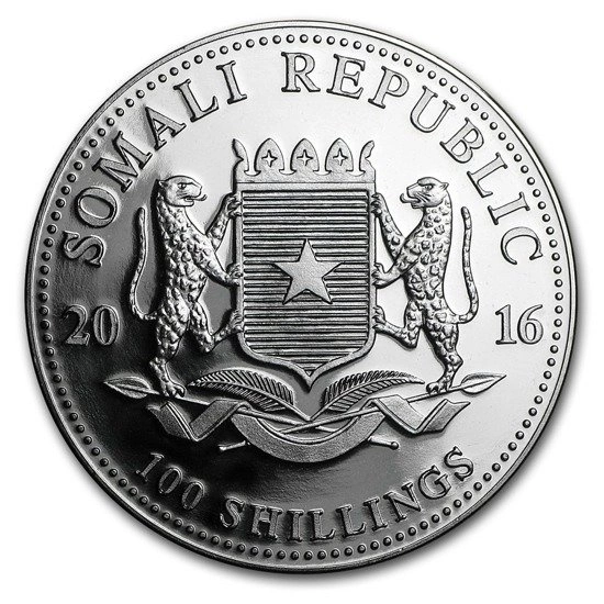 The reverse of the coin features an image of a Somali elephant, as well as the weight and fineness.Fabricant