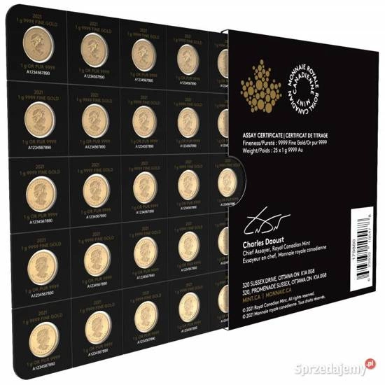 La pièce canadienne Feuille d'érable 1 gramme d'or 2022 est une forme d'investissement classique et sûre dans les métaux précieux. Elle se distingue par son design classique et son état parfait. Elle a un titre de 999,9, pèse 1 gramme et a un diamètre de 8 mm. Ce produit d'investissement bénéficie de la garantie du gouvernement canadien quant à sa légalité, la pureté du métal et l'origine du métal, et est également un moyen de paiement légal sur le territoire du pays émetteur. Walter Otto est à l'origine du design de l'image du feuillage de l'érable, inchangée depuis des années. L'avers représente le portrait de la reine Elizabeth II, la valeur nominale et l'année de frappe de la pièce. Le revers de la pièce représente une feuille d'érable. Le revers comporte des informations sur le poids et la pureté du métal.Fabricant