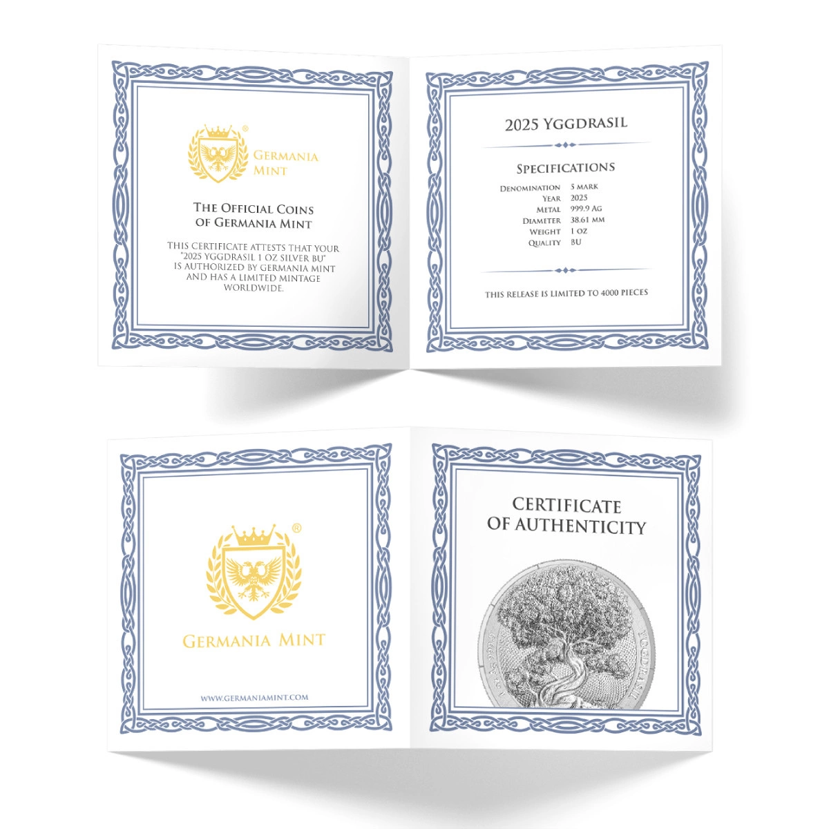 pièce en argent Yggdrasil est une offre unique pour les amateurs de mythologie nordique et de symbolisme des arbres. Elle constitue le final de la série de collection *Mythical Forest*, dont le thème principal est les arbres ayant une signification culturelle particulière. Cette fois-ci, Germania Mint présente le légendaire Yggdrasil, l'arbre mythique de la vie, qui relie tous les niveaux de l'univers. Ses branches atteignent le ciel et ses racines s'entrelacent dans les neuf mondes, symbolisant le cycle de la vie, la renaissance et l'ordre cosmique. La pièce a été frappée en argent de la plus haute pureté (999,9 Ag), dans une édition limitée à 4 000 exemplaires. Elle a été conçue par Mateusz Frąckowiak. Avers :L'avers représente le puissant arbre Yggdrasil avec ses branches étendues et son système racinaire développé. Parmi les racines, on aperçoit un serpent caché qui les ronge : il s'agit de Nidhogg, une créature issue des mythes nordiques. Le tronc de l'arbre s'élève vers le haut et sa couronne s'étend au-delà du bord de la composition, ce qui renforce l'impression de monumentalité. En arrière-plan, on peut voir des ornements subtils qui soulignent le caractère mystique du motif. Sur les côtés de l'avers figurent les inscriptions « YGGDRASIL » et « 1 oz Ag 999.9 ». Revers : Le revers représente le symbole bien connu de Germania : un aigle à deux têtes aux ailes déployées. Dans chacune de ses serres, il tient un éclair, symbole du pouvoir divin de création et de destruction. Les têtes de l'aigle sont tournées dans des directions opposées, symbolisant à la fois le regard vers le passé et vers l'avenir. Au-dessus de l'oiseau figure le nom de l'émetteur « GERMANIA », tandis qu'en dessous se trouvent la valeur nominale « 5 MARK » et l'année d'émission. Le fond du revers est orné de gravures raffinées qui confèrent à l'ensemble un caractère élégant et collectionnable.Besoin d'aide ? Avez-vous des questions ?Posez votre question et nous vous répondrons rapidement. Les questions et les réponses les plus intéressantes seront publiées pour que d'autres puissent les consulter.