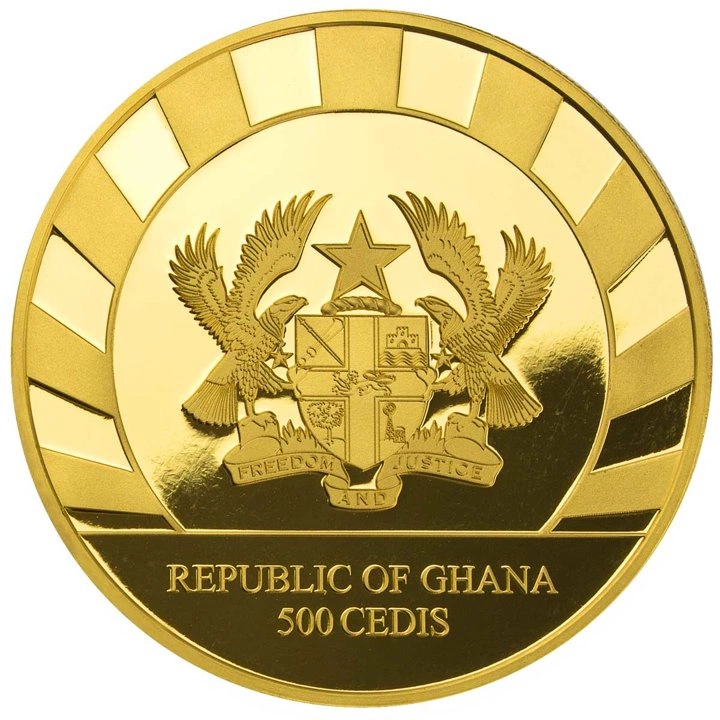 La pièce d'or Ghana : Giants of the Ice Age - Lion des cavernes 1 once d'or 2022 est la huitième et dernière pièce de la série Giants of the Ice Age (Les géants de l'ère glaciaire). La série présente une sélection d'animaux de l'ère glaciaire. La collection complète se compose de 8 pièces, chacune représentant un animal différent. La série comprend des pièces telles que le mammouth laineux, le cerf géant, le tigre à dents de sabre, l'ours des cavernes, le rhinocéros laineux, le taureau, le renne et le lion des cavernes. La pièce de 2022 représente un lion des cavernes. Elle a été frappée en or pur Au.9999, d'un poids de 1 once troy. Elle a été frappée par le fabricant allemand Leipziger Edelmetallverarbeitung. Cette pièce est également un moyen de paiement à part entière et bénéficie de la garantie du gouvernement ghanéen. L'avers de la pièce en or représente les armoiries du Ghana, l'inscription « REPUBLIC OF GHANA » et la valeur nominale de la pièce. Le revers représente un lion des cavernes, la gueule ouverte. De plus, le revers comporte les images de tous les animaux qui composent la série, ainsi que des informations sur l'année d'émission, le poids de la pièce, le titre du métal utilisé et le numéro de frappe.Fabricant