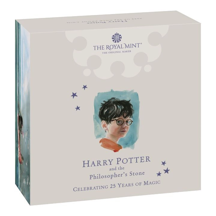 La pièce de 50 pence en or 2022 Proof commémorant le 25e anniversaire de Harry Potter est une pièce unique qui célèbre la première édition de « Harry Potter et la pierre philosophale », dont la première mondiale a eu lieu le 26 juin 1997 au Royaume-Uni. En 2022, le livre fête son 25e anniversaire. Il s'agit du premier tome d'une série de sept romans mettant en scène Harry Potter, le personnage principal, qui affronte le mal qu'il rencontre dans le monde des sorciers. La pièce est frappée en or Au.916.7, pèse 15,50 grammes, a un diamètre de 27,30 mm et est de qualité proof. Le tirage est de 310 pièces. De plus, cette pièce unique a été produite par la Monnaie royale. Le produit est livré dans son emballage d'origine. La pièce est garantie par le gouvernement britannique quant à sa légalité, sa pureté et l'origine du métal, et a cours légal dans le pays d'émission. L'avers représente une image de la reine Elizabeth II ainsi que la valeur et l'année, dessinées par Jody Clark. Le revers de la pièce représente Harry Potter et l'inscription « 25 YEARS OF MAGIC » (25 ans de magie). Le revers a été dessiné par Ffion Gwillim.Designer