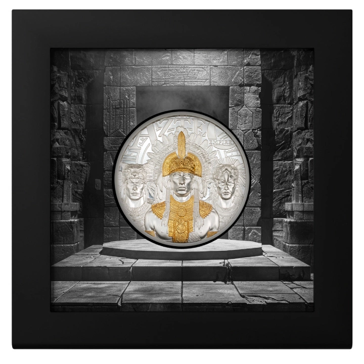 Îles Cook : Légendes - Empire aztèque, pièce plaquée or de 3 onces en argent 2025 Proof
