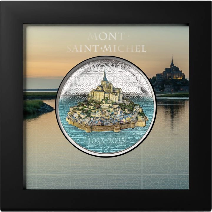 Cook Islands : Mont-Saint-Michel coloré 5 onces d'argent 2023 Proof Ultra High Relief est un exemplaire extrêmement intéressant, qui a été réalisé avec un grand souci du détail. Cette pièce peut compléter le portefeuille de collection et d'investissement d'un acheteur. Entouré de vastes étendues de sable ou, à marée haute, d'eau de mer, le Mont-Saint-Michel, avec sa silhouette unique, couronne une colline isolée au large des côtes normandes. Considéré comme un célèbre point de repère, lieu de pèlerinage et inscrit sur la liste du patrimoine mondial de l'UNESCO. La pièce en argent a été frappée en argent pur Ag.999, d'un poids de 5 onces troy, d'un diamètre de 65 mm, en qualité proof et ultra high relief. Le tirage de la pièce est de 500 exemplaires. Le produit est un moyen de paiement à part entière sur le territoire des Îles Cook. L'avers représente le Mont Saint Michel, l'effigie de la reine Elizabeth II et une carte de la France. L'avers comporte également les inscriptions « ELIZABETH II », « COOK ISLANDS » et la valeur nominale. L'avers a été conçu par Ian Rank-Broadley. Le revers représente le Mont Saint Michel en couleur et les inscriptions « MONT SAINT MICHEL » et « 1923-2023 ».Besoin d'aide ? Avez-vous des questions ?Posez votre question et nous vous répondrons rapidement. Les questions et les réponses les plus intéressantes seront publiées pour que d'autres puissent les consulter.