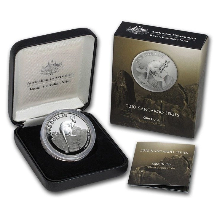 Rewers: zdobi wizerunek siedzącego na skale kangura. Na rewersie znajduje się także informacja o wadze, roku wydania monety.
