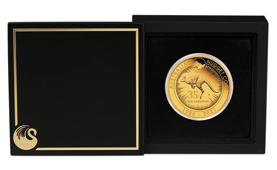 Kangourou australien : 35e anniversaire Kangaroo Nugget 2 onces d'or 2021 Proof