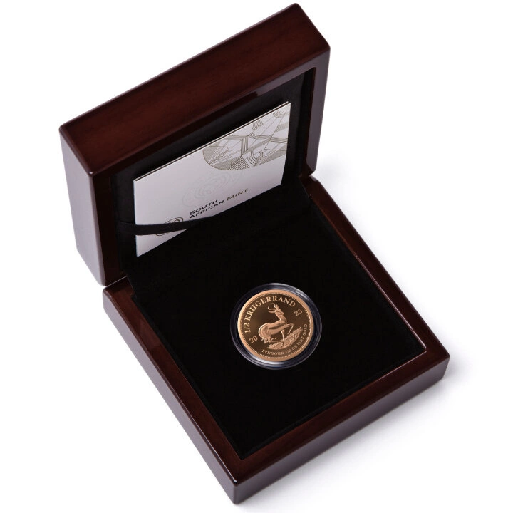 Le Krugerrand, la pièce d'investissement la plus connue et la plus appréciée au monde. Cette pièce de collection a été frappée dans un poids de 1/2 once troy, en or 916 avec une petite quantité de cuivre. L'ajout de cuivre augmente la résistance de la pièce aux rayures et lui confère une couleur unique. De plus, cet exemplaire unique est accompagné d'un certificat d'authenticité et est disponible en édition limitée à 500 exemplaires. Les Krugerrands sont produits par la Monnaie sud-africaine Rand Refinery. Ils ont cours légal et sont garantis par le gouvernement sud-africain quant à leur légalité, la pureté du métal et son origine. Il est intéressant de noter que, bien que les Krugerrands soient une monnaie légale, ils n'ont pas de valeur monétaire. Cela signifie que la Banque de réserve sud-africaine est tenue de racheter les pièces au prix actuel de l'or.