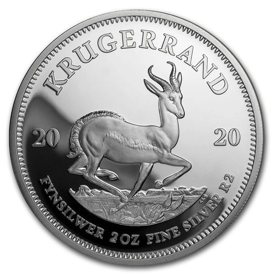 De plus, chaque Krugerrand est un moyen de paiement à part entière, dont la légalité, la pureté du métal et l'origine sont garanties par le gouvernement sud-africain. Il est également important de savoir que, bien que les Krugerrands soient un moyen de paiement à part entière, ils n'ont pas de valeur monétaire. Cela signifie que la Banque de réserve sud-africaine est tenue de racheter les pièces au prix actuel du métal précieux. L'avers est orné du portrait de Paul Kruger, tandis que la bordure comporte les mots « Afrique du Sud » en afrikaans et en anglais. Le revers représente un springbok, symbole de l'Afrique du Sud. De part et d'autre de l'animal figurent les chiffres indiquant l'année de frappe, et en dessous, l'inscription « Fynsilwer 2oz fine silver r2 », qui indique la teneur en argent pur.