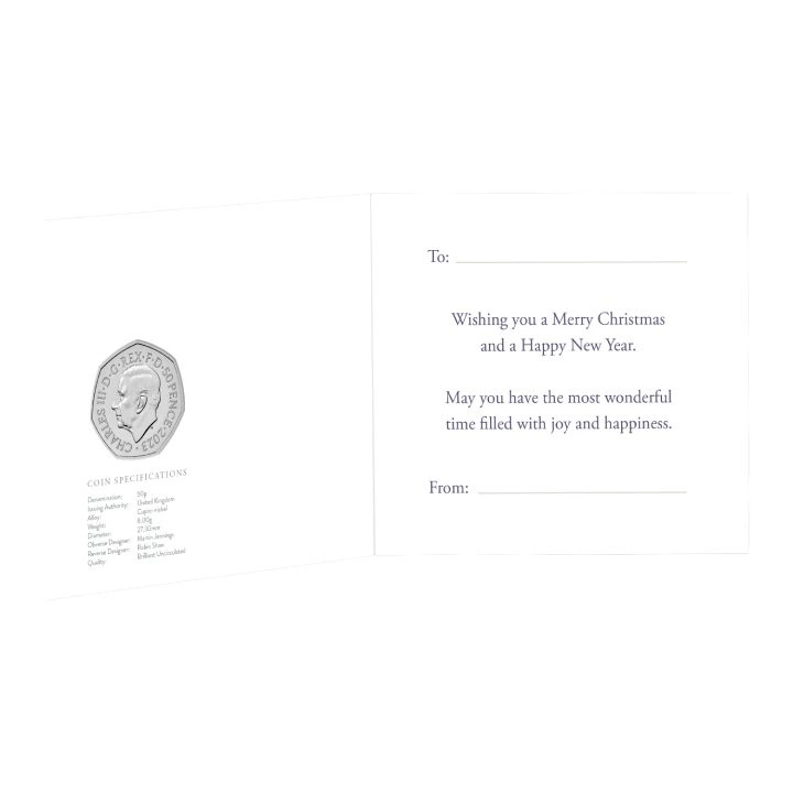 The Snowman Cuivre-nickel 2023 est une pièce qui fait référence à l'histoire émouvante du même nom. The Snowman raconte l'histoire d'un garçon extraordinaire, Billy, d'un bonhomme de neige animé et d'un chien des neiges qui vivent une aventure incroyable. La pièce est frappée dans un alliage de cuivre et de nickel. Le tirage de la pièce est illimité. De plus, cet exemplaire exceptionnel a été produit par la Monnaie royale britannique. Le produit bénéficie de la garantie du gouvernement britannique quant à sa légalité, la pureté du métal et l'origine du métal, et est également un moyen de paiement légal sur le territoire du pays émetteur. L'avers représente l'effigie du roi Charles III de Grande-Bretagne ainsi que la date d'émission et la valeur nominale de la pièce. L'avers a été conçu par Martin Jennings.