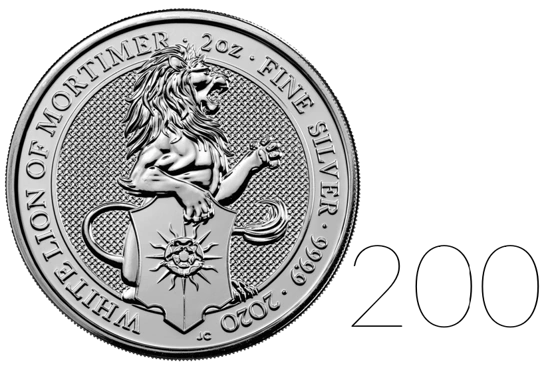 Les bêtes de la reine : Le lion blanc des Mortimer 2 onces d'argent LOT DE 200 PIÈCES 2020