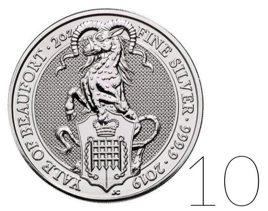 Les bêtes de la reine : Yale Beaufort 2 onces d'argent 2019 (10 szt.)