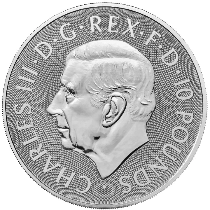 The Royal Tudor Beasts : The Tudor Dragon 10 onces d'argent 2024 est le cinquième exemplaire de la deuxième série The Royal Tudor Beasts. Cette pièce de collection représente l'une des dix bêtes héraldiques royales, le dragon Tudor. Les dragons étaient des symboles importants au Moyen Âge et étaient utilisés par Owen Tudor, l'arrière-grand-père d'Henri VIII. Henri VIII considérait donc ce symbole comme un lien avec Cadwalader, roi de Gwynedd en Pays de Galles, qui régna vers 655-682. Selon des manuscrits contemporains, le dragon Tudor avait la tête, le dos et les ailes rouges, et le ventre doré. La série complète comprendra 10 pièces représentant des animaux : le lion d'Angleterre, le taureau de Clarence, le dragon Tudor, le lévrier de Richmond, le dragon royal, le yale de Beaufort, la licorne Seymour, la panthère de la reine, le lion de la reine et la panthère de Seymour. La pièce est frappée en argent pur Ag.999, pèse 10 onces troy et mesure 89 mm de diamètre. Le produit est disponible en quantité illimitée. De plus, cet exemplaire exceptionnel a été produit par la Monnaie royale. L'avers représente le portrait du roi Charles III de Grande-Bretagne et la valeur nominale, selon le dessin de Martin Jennings.