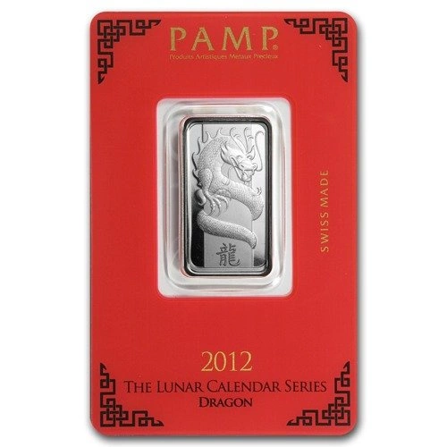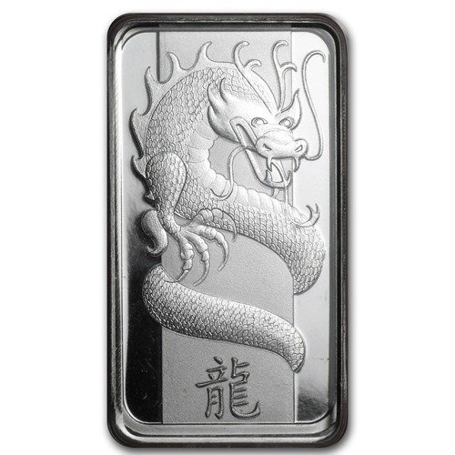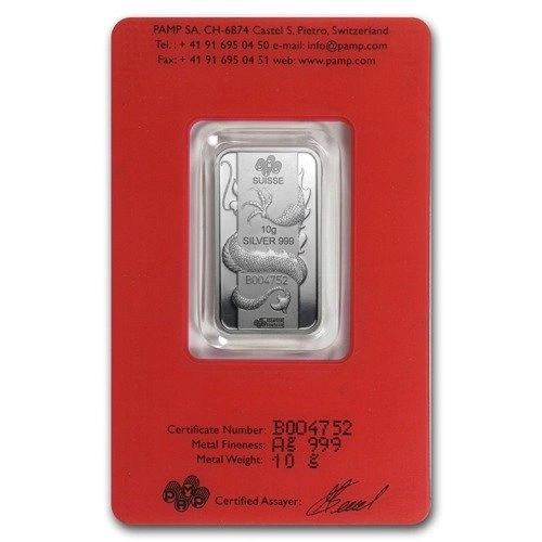 Lingot d'argent de 10 grammes série Lunar Année du Dragon