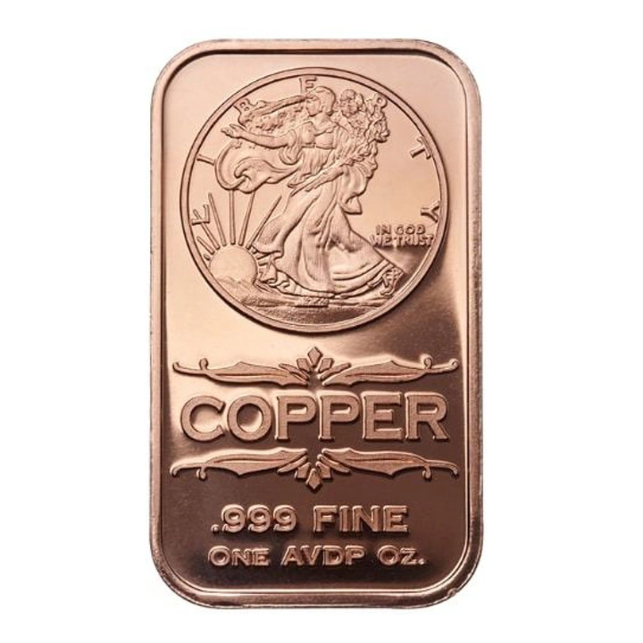 Sztabka Walking Liberty 1 uncja miedzi wykorzystuje klasyczny projekt Weinmana, w którym personifikacja Wolności kroczy naprzód z symbolem pokoju i siły. Sztabka zawiera miedź próby 999 w masie 1 uncji AVDP (28,349 g). Wyraźne inskrypcje określają metal, próbę i jednostkę wagi. Miedź charakteryzuje stabilny popyt technologiczny, co sprawia ze stanowi surowiec o długoterminowym potencjale do akumulacji w małych jednostkach. Detal reliefu wiernie oddaje szaty postaci, promienie słońca i elementy flagi, podkreślając rangę historycznego pierwowzoru.