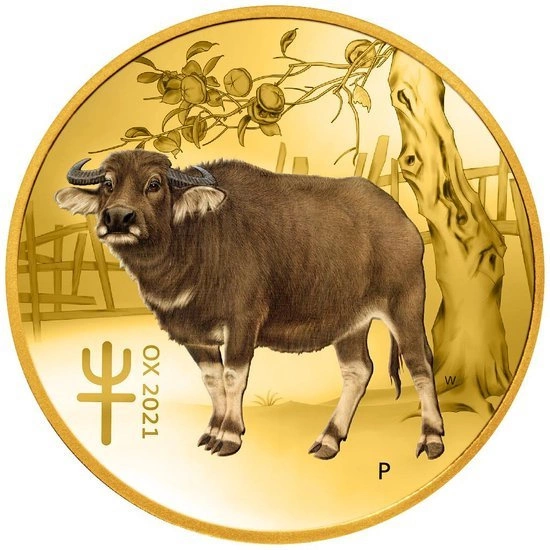 Lunar III : Année du Buffle 1/10 once d'or colorée 2021