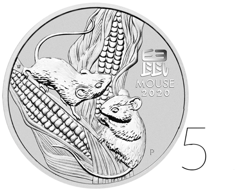 Lunar III : Année du Rat 2 onces d'argent LOT DE 5 PIÈCES 2020