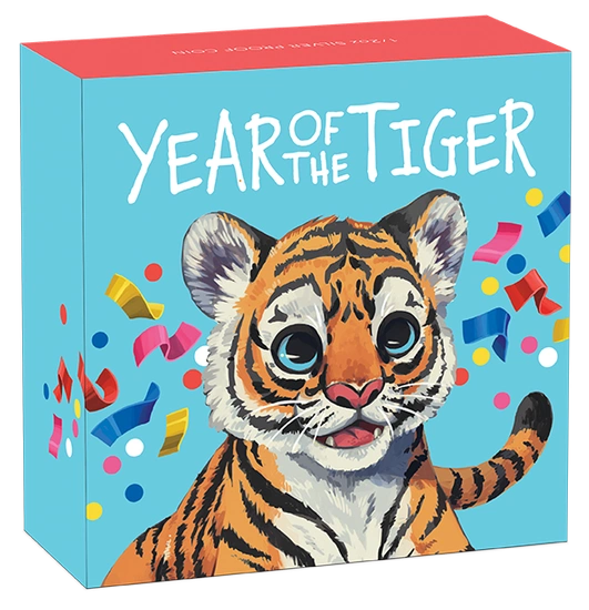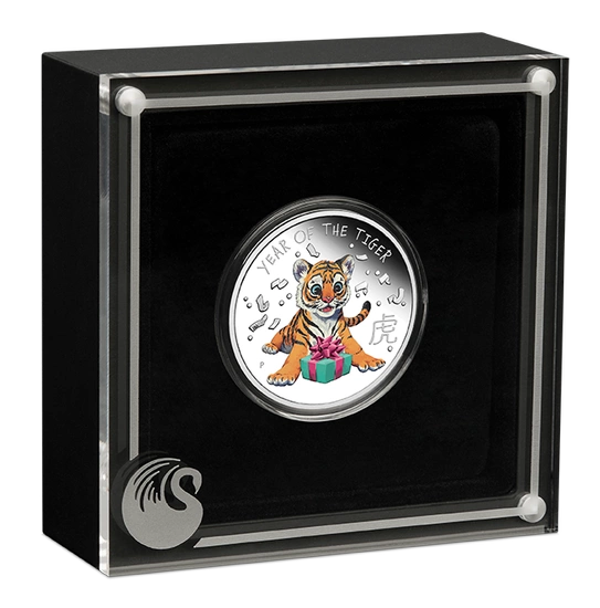 La pièce Lunar III : Petit tigre coloré 1/2 once d'argent 2022 Proof est une pièce de collection qui peut être un cadeau idéal pour toute personne née l'année du Tigre, c'est-à-dire en 1914, 1926, 1938, 1950, 1962, 1974, 1986, 1998 et 2010, ainsi qu'en 2022. Cette pièce unique de 2022 comporte une adorable image de l'animal éponyme et, surtout, elle a été frappée avec une attention particulière portée à chaque détail, selon la norme proof (frappe miroir). Le Petit Tigre 2022 est fabriqué en argent pur Ag.9999, pèse 1/2 once troy et mesure 32,6 mm de diamètre. La production de cette pièce est assurée par la célèbre monnaie australienne The Perth Mint. De plus, le tigre en argent est livré dans un emballage cadeau accompagné d'un certificat d'authenticité. L'avers de la pièce en argent Petit Tigre est orné du portrait de la reine Elizabeth II. L'ensemble est entouré de l'inscription « QUEEN ELIZABETH II » et « TUVALU ». L'avers comporte également des informations sur le poids, la pureté du métal, l'année de frappe et la valeur nominale de la pièce. Le revers représente un petit tigre coloré et l'inscription « YEAR OF THE TIGER ».Besoin d'aide ? Avez-vous des questions ?Posez votre question et nous vous répondrons rapidement. Les questions et les réponses les plus intéressantes seront publiées pour que d'autres puissent les consulter.