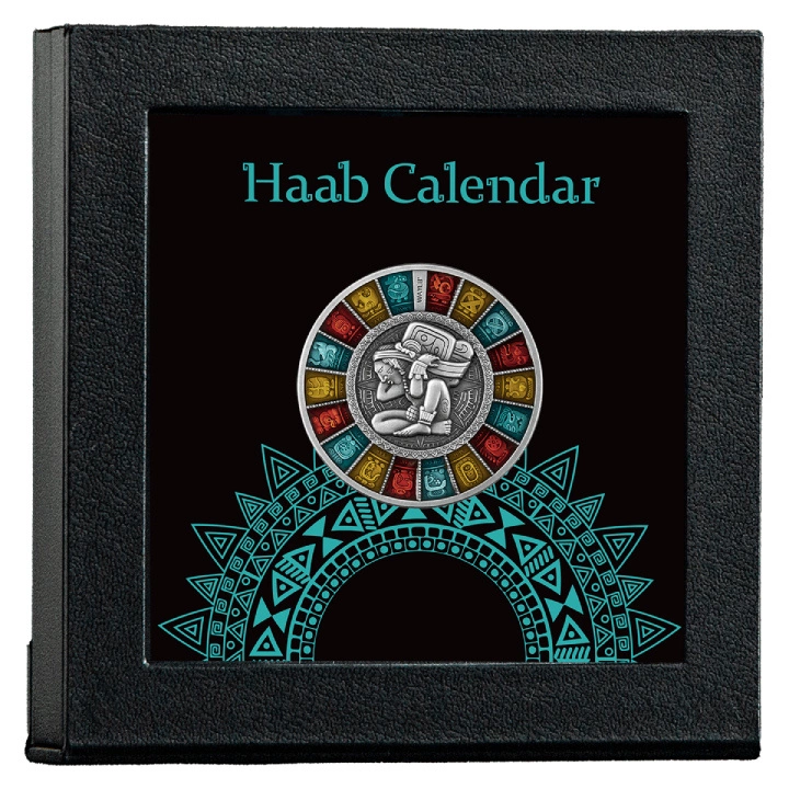 Niue : Calendrier Haab coloré 2 argent 2023 Pièce à haut relief antique