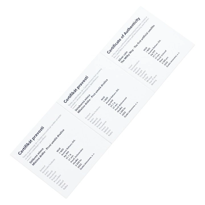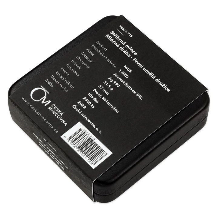 Niue : The Milky Way - The First Artificial Satellite colorée 1 argent 2022 Proof est la troisième pièce de la série « The Milky Way ». Elle représente le satellite Spoutnik 1. Il s'agit du premier satellite artificiel lancé par l'URSS le 4 octobre 1957. Les observations visuelles et radio de Spoutnik ont été effectuées dans le monde entier. La pièce a été frappée dans un métal pur de titre Ag.999, d'un poids de 31,1 grammes, d'un diamètre de 37 mm, dans la norme proof. Le produit a un tirage limité à seulement 2 500 exemplaires. Cette pièce unique a été conçue par Asamat Baltaev, DiS. et produite par la Monnaie tchèque. Elle est également un moyen de paiement officiel sur le territoire de Niue. La pièce est garantie quant à sa légalité, la pureté du métal et son origine. Le produit est livré dans son coffret d'origine avec un certificat d'authenticité. L'avers de la pièce est orné du portrait de la reine Elizabeth II, souveraine du Royaume-Uni, d'une soucoupe volante, de l'inscription « NIUE ISLAND » , « ELIZABETH II » ainsi que la valeur nominale et l'année de la pièce. L'avers a été conçu par Ian Rank-Broadley. Le revers représente le satellite coloré Spoutnik 1 dans le système solaire. L'inscription « SPUTNIK I » figure au revers.Designer