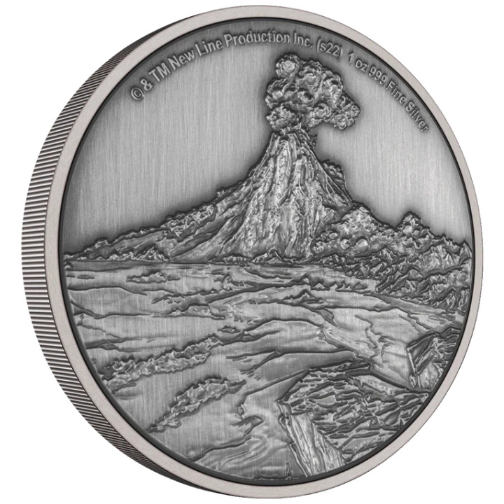Niue: The Lord of the Rings - Mount Doom 1 oz Silver 2022 Antique Finish is an interesting silver coin for collectors and fans of The Lord of the Rings trilogy. The coin was created in collaboration with Warner Bros. Consumer Products and depicts the volcano on Mount Doom in Mordor. The silver coin is minted from pure Ag.999 bullion, weighs 1 troy ounce, has a diameter of 40 mm, and features an antique finish. It is produced by the renowned mint manufacturer, the New Zealand Mint. In addition, each coin is guaranteed by the New Zealand government and is legal tender in the country of issue. The obverse of the silver coin features an image of Queen Elizabeth II, the inscription “ELIZABETH II,” , “NIUE,” and the face value and year of issue. The obverse was designed by Ian Rank-Broadley. The reverse shows the volcano on Mount Doom. The reverse also features information about the weight and purity of the metal.Fabricant