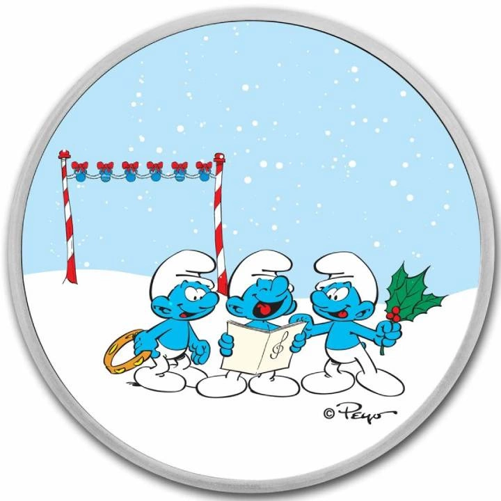Niue : Smurfs Christmas Carol coloré 1 once d'argent 2023 Slab est un exemplaire en argent qui peut enrichir le portefeuille de collection et d'investissement d'un acheteur. Les Schtroumpfs sont une série de bandes dessinées belges mettant en scène une colonie fictive de petites créatures humanoïdes bleues qui vivent dans des maisons en forme de champignons dans la forêt. La pièce est frappée dans un métal pur de titre Ag.999, pèse une once troy et mesure 39 mm de diamètre. Il est important de noter que cette émission unique est strictement limitée à 10 000 exemplaires. Chaque pièce est présentée dans un slab.L'avers de la pièce en argent représente les armoiries de Niue (Public Seal of Niue) et l'inscription « THE SMURFS ». L'avers comporte également des informations sur le poids, la pureté du métal, la valeur nominale et l'année de frappe de la pièce. Le reversreprésente une image colorée de trois Schtroumpfs et le pseudonyme artistique « PEYO », c'est-à-dire Pierre Culliford.Besoin d'aide ? Avez-vous des questions ?Posez votre question et nous vous répondrons rapidement. Les questions et les réponses les plus intéressantes seront publiées pour que d'autres puissent les consulter.
