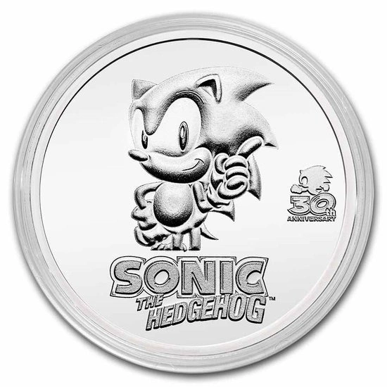 Niue : Sonic The Hedgehog 1 once d'argent 2021 est une pièce d'argent qui peut enrichir le portefeuille de collection et d'investissement d'un acheteur. La pièce célèbre et commémore le 30e anniversaire de Sonic The Hedgehog, le jeu vidéo mettant en scène un hérisson bleu, Sonic. Il est important de noter que cette émission unique est strictement limitée à 30 000 exemplaires. La pièce Niue : Sonic The Hedgehog 1 once d'argent 2021 est frappée dans un métal pur de titre Ag.999, d'un poids d'une once troy et d'un diamètre de 39 mm. L'avers de la pièce en argent représente les armoiries de Niue (Public Seal of Niue). L'avers comporte également des informations sur le poids, la pureté du métal, la valeur nominale, l'année de frappe, ainsi que l'inscription « SEGA », qui est le fabricant du jeu vidéo. Le revers de la pièce en argent représente l'image de Sonic et le logo du 30e anniversaire.Besoin d'aide ? Avez-vous des questions ?Posez votre question et nous vous répondrons rapidement. Les questions et les réponses les plus intéressantes seront publiées pour que d'autres puissent les consulter.