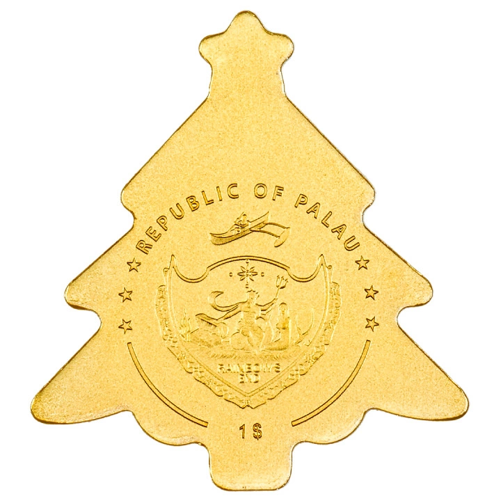 Palau : Christmas Tree 0,5 gramme Gold Silk Coin est une pièce extrêmement intéressante, qui a été réalisée avec un grand souci du détail. La pièce fait référence à Noël. Elle a été frappée en or pur Au.9999, pèse 0,5 gramme, a un diamètre de 13,92 mm et est de qualité silk. Le tirage de la pièce est de 15 000 exemplaires. Le produit est un moyen de paiement légal sur le territoire de la République de Palau. L'avers représente le logo « Republic of Palau ». L'avers comporte également des informations sur la valeur nominale. Le revers représente un sapin de Noël en or.Besoin d'aide ? Avez-vous des questions ?Posez votre question et nous vous répondrons rapidement. Les questions et les réponses les plus intéressantes seront publiées pour que d'autres puissent les consulter.