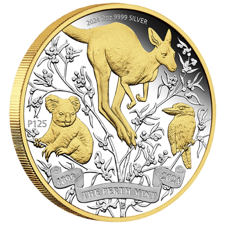 Perth Mint 125e anniversaire plaqué or 2 onces d'argent 2024 Proof