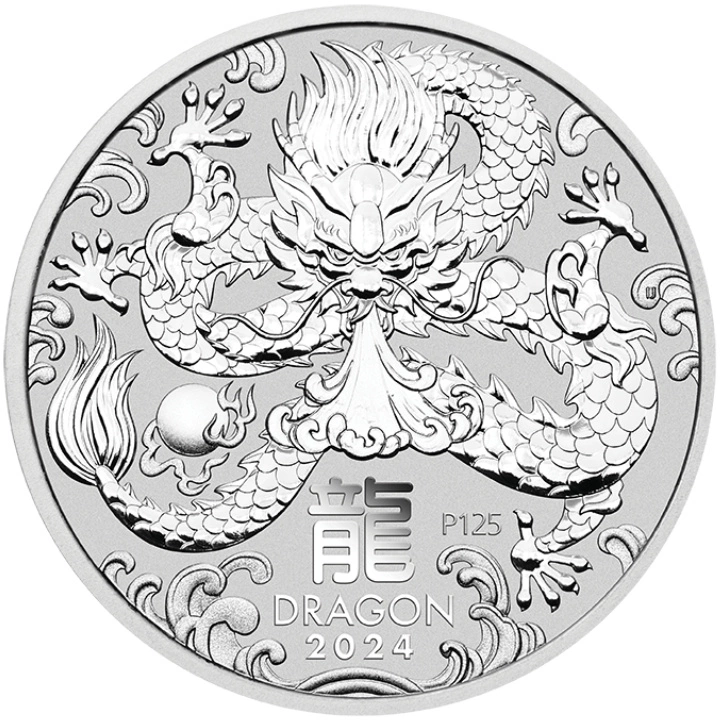 The Perth Mint's Lunar III - Year of the Dragon 10 kg Silver 2024 bullion coin is the fifth edition of the Lunar III series. Previous coins in the series were the Year of the Rat 2020, Year of the Ox 2021, Year of the Tiger 2022, and Year of the Rabbit 2023. The Lunar series refers to the 12 animals that represent the Chinese lunar calendar. The year 2024 belongs to the dragon, which in Chinese mythology is a majestic beast inhabiting rivers, lakes, oceans, and wandering the sky. The Chinese zodiac sign of the dragon falls in the years: 1928, 1940, 1952, 1964, 1976, 1988, 2000, 2012, and 2024. The coin is minted from Ag.9999 silver, weighs 10 kilograms and has a diameter of 221 mm. The renowned precious metals manufacturer The Perth Mint is responsible for the issuance of the coins. The coin is guaranteed by the Australian government as to the legality and origin of the metal, and is legal tender in the country of issue. The coin features a security feature in the form of a micro-engraved letter on the reverse side. The obverse of the Year of the Dragon coin features an image of Queen Elizabeth II and the inscriptions “ELIZABETH II” and “AUSTRALIA”. Additionally, the obverse side includes information about the coin's face value, weight, and fineness. The reverse side depicts a Chinese dragon. The reverse also features the Chinese character for “dragon,” the inscription “DRAGON 2024,” and the letter “P,” which is the mark of The Perth Mint.Besoin d'aide ? Avez-vous des questions ?Posez votre question et nous vous répondrons rapidement. Les questions et les réponses les plus intéressantes seront publiées pour que d'autres puissent les consulter.