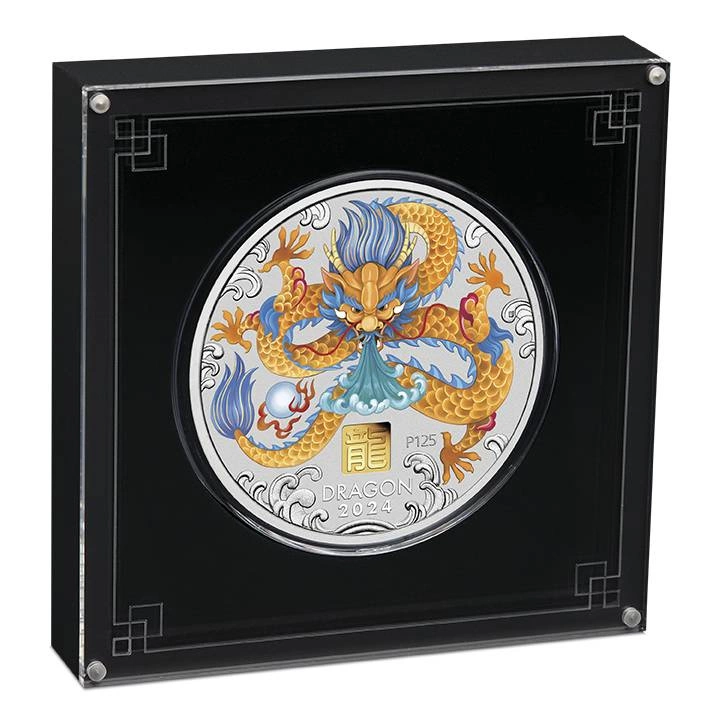 Perth Mint : Lunar III - Année du Dragon colorée 1000 grammes d'argent 2024 Gold Privy Mark