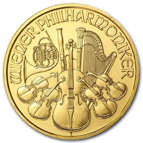 La pièce est frappée en or pur. Elle a été la première pièce d'investissement émise en euros. C'est l'un des métaux les plus recherchés par les investisseurs du monde entier. Elle constitue en effet un excellent placement en raison de sa liquidité, tant à la vente qu'à l'achat. La Philharmonique de Vienne est produite par la Monnaie autrichienne depuis 1989. Le motif de la pièce a été créé à l'aide d'un logiciel de graphisme, puis transféré sur l'or. Selon le Conseil mondial de l'or, en 1992, 1995 et 1996, la Philharmonique était la pièce d'investissement la plus vendue au monde.