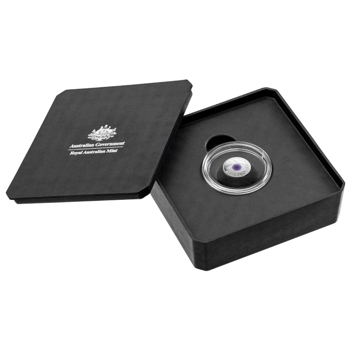 La pièce RAM : War Animals Remembrance colorée en argent 2024 Proof « C » Mintmark est une proposition d'investissement intéressante qui peut enrichir le portefeuille d'un collectionneur. Cette pièce est un symbole émouvant du courage et du service des animaux qui ont accompagné les soldats pendant les guerres. La pièce en argent a été frappée dans un alliage Ag.999, pèse 8,55 grammes et mesure 20,5 mm de diamètre, dans la norme proof. Le tirage de la pièce n'est que de 7 500 exemplaires. Ce produit unique est emballé dans un emballage original. L'émetteur de cette pièce est le célèbre fabricant mondial de produits d'investissement, la Royal Australian Mint. La pièce a cours légal et bénéficie de la garantie du gouvernement australien quant à sa légalité, la pureté du métal et l'origine du métal. L'avers représente l'effigie du roi Charles III, les inscriptions « CHARLES III » et « AUSTRALIA », ainsi que la date d'émission et la valeur nominale de la pièce. L'avers a été conçu par Daniel Thorne. Le revers de la pièce représente une fleur de pavot violette entourée d'animaux australiens. La pièce a été conçue par Bronwyn Scott.Designer