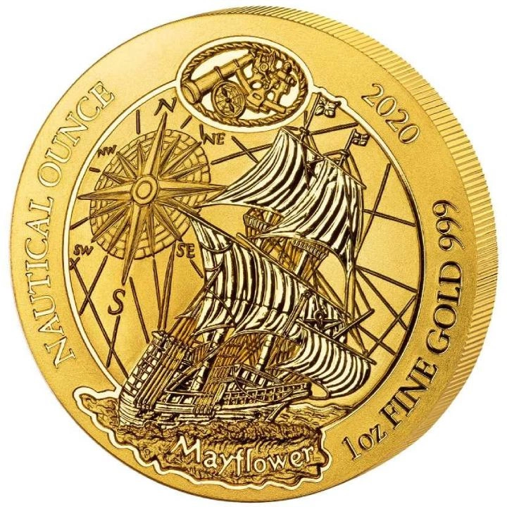 The Rwanda Gold Coin: Nautical Ounce - Mayflower 1 oz Gold 2020 is the fourth coin in the Nautical Ounce Series. It is a coin minted from pure 9999 gold, weighing 1 troy ounce and with a diameter of 40 mm. The German minting company BH Mayer's Kunstprageanstalt GmbH is responsible for the production of the entire series. What's more, the Mayflower gold coin is minted under license from the Rwandan government, which means it is guaranteed by the Rwandan government and is legal tender in the country of issue. The obverse of the coin features the coat of arms of Rwanda and the coin's face value in Rwandan francs. The reverse of the coin features the Mayflower ship with a stylized compass in the background and includes information about the weight, purity, and date of issue.Fabricant
