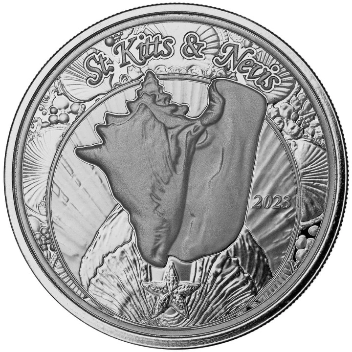 Saint-Kitts-et-Nevis : Coquillage 1 once d'argent 2023 Prooflike (monnaie dans une capsule)