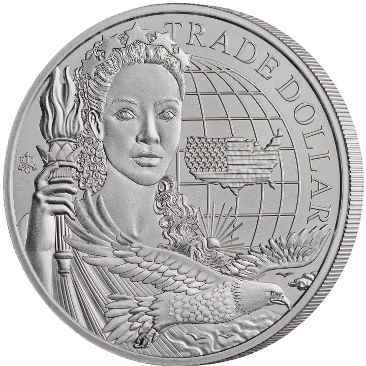 The St. Helena Modern US Trade Dollar 1 oz Silver 2023 coin is the fourth coin in the Modern Trade Dollar series. The coins in the Modern Trade Dollar series will feature innovative reinterpretations of classic trade dollars that were used in international trade. This coin depicts the goddess of liberty with a torch, an eagle, and a map of the United States. The silver coin is minted from pure Ag.999 silver, weighs one troy ounce, and has a diameter of 38.61 mm. The mintage of this bullion product is 4,750 pieces. It is issued by the respected precious metals manufacturer The East India Company and is legal tender on the island of St. Helena. The obverse of the silver coin features an image of King Charles III of Great Britain, the inscription “CHARLES III∙D∙G∙REX∙F∙D” and “ST. HELENA.” The obverse also includes information about the face value and year of minting. The obverse was designed by Glyn Davies. The reverse of the coin depicts the personification of the goddess of liberty and a geographical visualization of the United States. The reverse also features the inscription “TRADE DOLLAR.”Fabricant