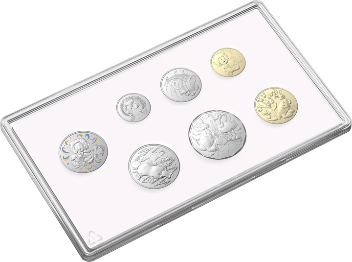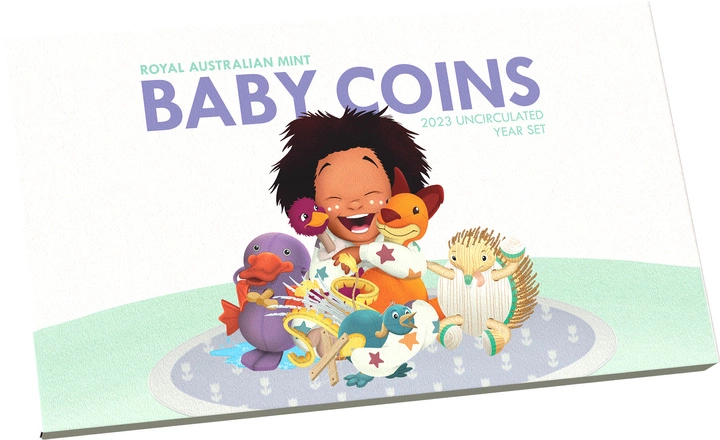 Le set de 6 pièces Australian Baby 2023 est un produit qui convient parfaitement comme cadeau pour un nouveau-né né en 2023. Le set peut également être un excellent cadeau pour une fille ou un garçon à l'occasion d'un baptême. Ce produit sera un cadeau numismatique idéal. Il contient 6 pièces et comprend en outre un exemplaire coloré, conçu par E. Howie. Le tirage est illimité. Les produits sont frappés dans un alliage de cuivre et de nickel et de bronze d'aluminium. Les pièces du coffret ont les valeurs suivantes : 2, 1, 50 centimes, 20 centimes, 10 centimes, 5 centimes. Par ordre décroissant de valeur nominale, les produits ont un poids et un diamètre de 6,60 g et 20,50 mm, 9 g et 25 mm, 15,55 g et 31,51 mm, 11,30 g et 28,52 mm, 5,65 g et 23,60 mm, 2,83 g et 19,41 mm. La production du set est assurée par le célèbre fabricant de métaux précieux, la Monnaie royale australienne. Le produit est présenté dans un emballage original et individuel. L'avers des pièces représente l'effigie de la reine Elizabeth II d'Angleterre, accompagnée de l'année de frappe et du pays émetteur, selon le dessin de Jody Clark. Le revers représente des jouets populaires pour enfants et indique la valeur nominale de la pièce. Le revers a été conçu par Bronwyn Scott.Designer