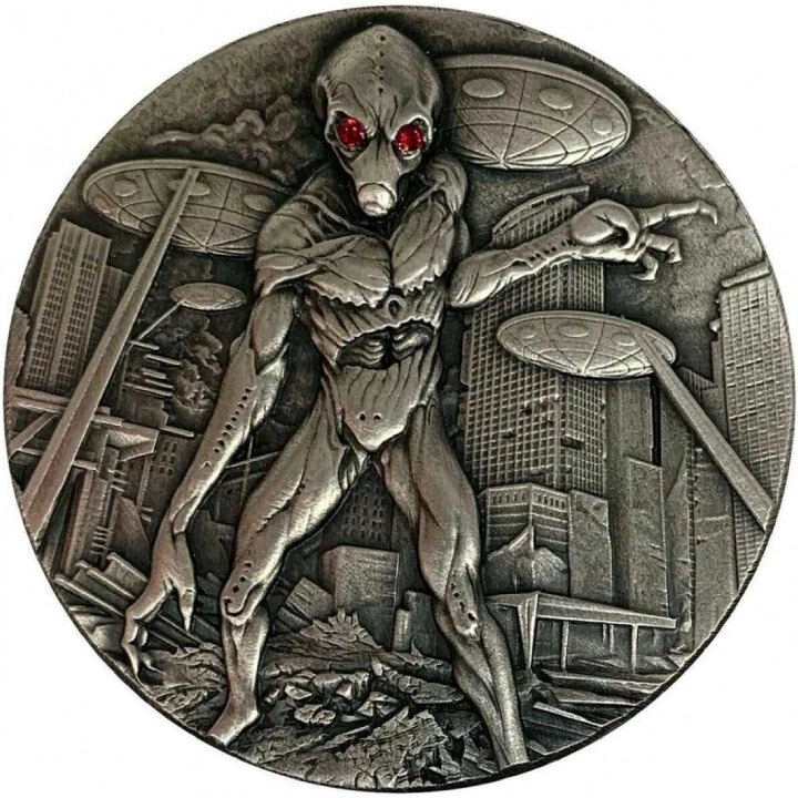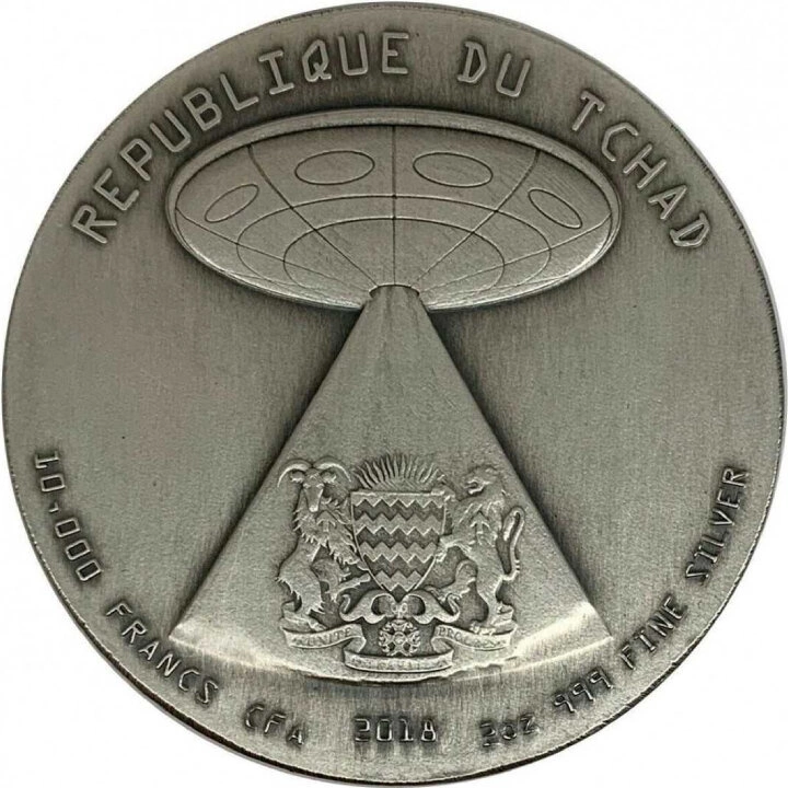 Tchad : Alien Invasion 2 onces d'argent 2018 Pièce antique (avec cristaux Swarovski)