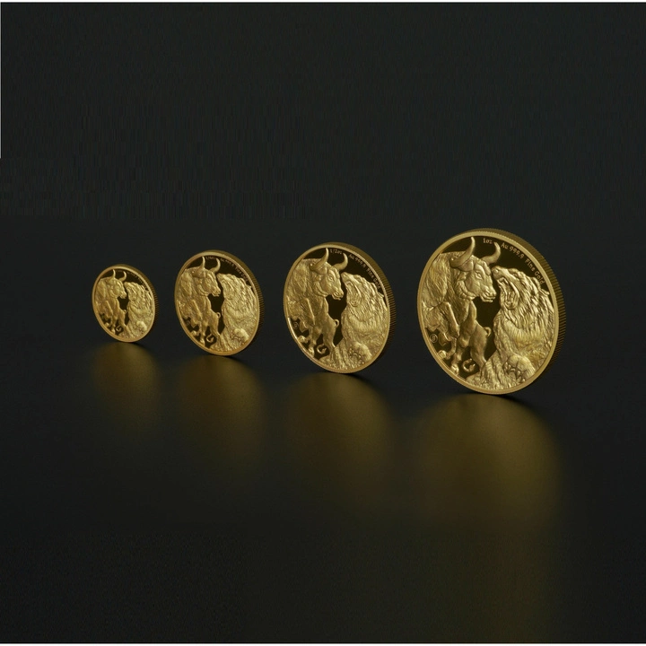 La pièce d'investissement en or Tchad : Bull & Bear 1/4 once d'or 2023 est un produit représentant un taureau et un ours. Ce produit provient de la Monnaie bulgare Bulmint. Ce produit d'investissement est frappé en or Au.9999, pèse 1/4 once troy et mesure 22 mm de diamètre. Les animaux sont synonymes de force. Chacun des animaux représentés au revers attaque l'adversaire qu'il rencontre. De plus, la pièce de 2023 est un moyen de paiement à part entière sur le territoire du pays émetteur et bénéficie de la garantie du gouvernement de la République du Tchad. L'avers de la pièce en or représente les armoiries du Tchad, l'inscription « RÉPUBLIQUE DU TCHAD » ainsi que des informations sur l'année d'émission et la valeur nominale de la pièce. Le revers représente un taureau et un ours dans une posture agressive. Il comporte également des informations sur le poids et la pureté du métal précieux. Dans la partie inférieure gauche de la pièce, à côté du sabot du taureau, se trouve le logo de la Monnaie Bulmint.Besoin d'aide ? Avez-vous des questions ?Posez votre question et nous vous répondrons rapidement. Les questions et les réponses les plus intéressantes seront publiées pour que d'autres puissent les consulter.
