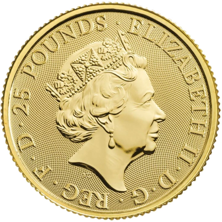 La pièce Royal Mint : The Gold Standard 1/4 once d'or 2019 est une proposition d'investissement intéressante qui peut enrichir le portefeuille d'un collectionneur. La pièce a été fabriquée en or Au.9999, pèse 1/4 once troy et a un diamètre de 22 mm. La célèbre Monnaie royale britannique est responsable de l'émission des pièces. La pièce est un produit garanti par le gouvernement britannique et constitue un moyen de paiement légal sur le territoire du pays émetteur. L'avers est orné d'un portrait de la reine Elizabeth II, dessiné par Jody Clark. Le revers de la pièce en or représente le poids et l'inscription « THE GOLD STANDARD ». Le revers comporte également la balance, la pureté du métal et la date d'émission.Designer