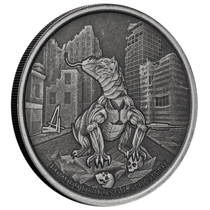 Tokelau : Komodo Dragon A.I. Apocalypse 1 once d'argent 2022 Pièce vieillie