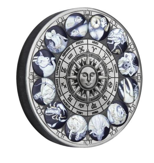 Tuvalu : Signes du zodiaque coloré 5 onces d'argent 2022 Pièce antique