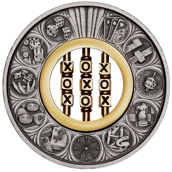 Tuvalu : Tic-Tac-Toe 2 onces d'argent 2022 Antiqued Insert Macro Mood
