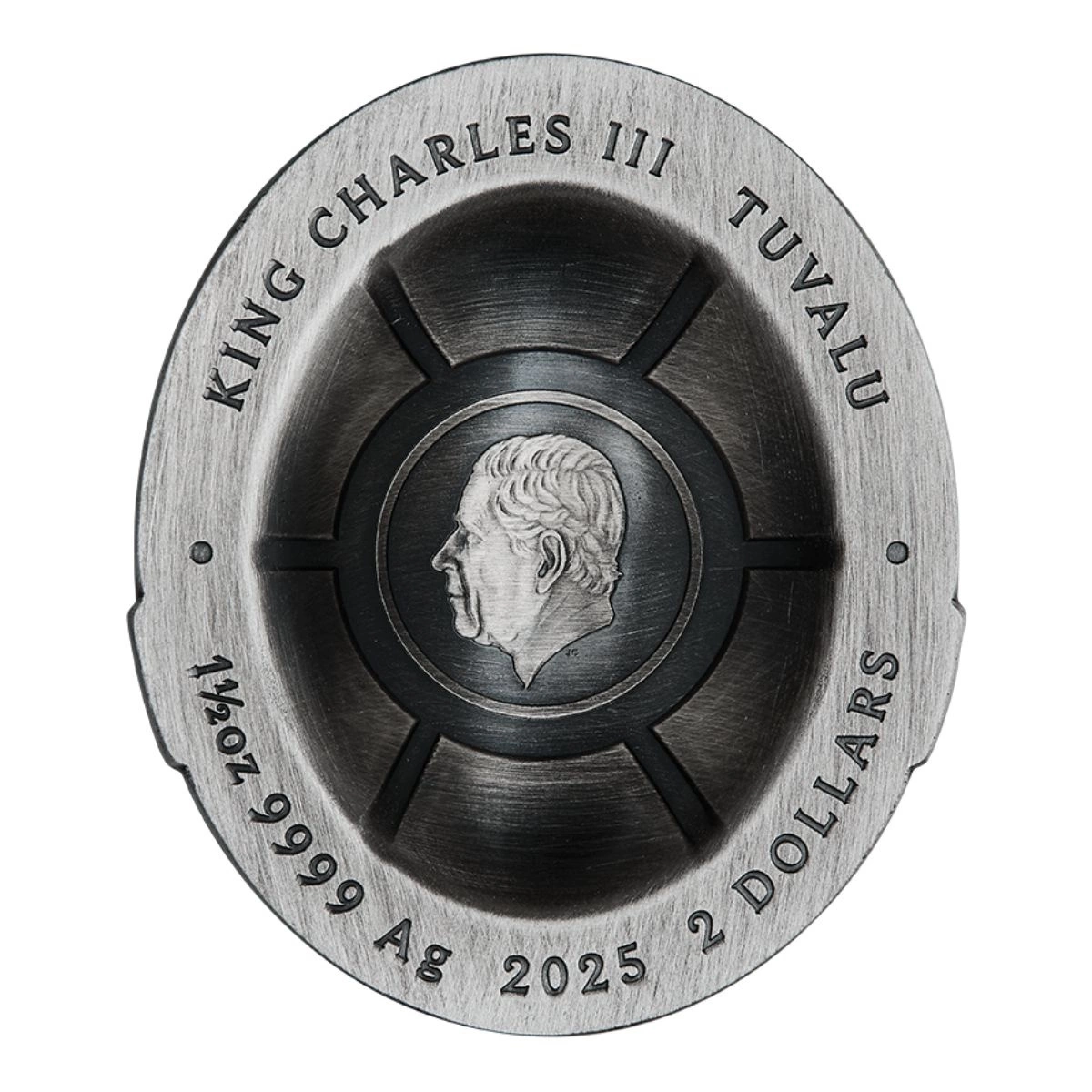 Teenage Mutant Ninja Turtles – Domed Shell 1,5 once d'argent 2025 Antiqued est un véritable régal pour les fans de culture pop. La Perth Mint rend hommage aux quatre frères des égouts de New York – Leonard, Donatello, Raphael et Michelangelo – en créant une pièce unique, incurvée, en forme de leur carapace verte caractéristique. Cette forme inhabituelle symbolise la force, l'unité et la résilience des tortues ninja emblématiques qui, depuis des décennies, combattent le mal, armées de l'art du ninjutsu... et de leur amour pour la pizza. La pièce a été frappée à partir de 1,5 once d'argent pur à 99,99 % et finie à la main dans un style antique, ce qui lui donne l'apparence d'une relique légèrement patinée. Au revers, on peut voir l'armure en relief des TMNT avec l'inscription « TMNT » et la marque de la monnaie « P ». L'ensemble a été conçu par Lucas Bowers. Le tirage limité à seulement 1 500 exemplaires dans le monde entier fera de chaque pièce un élément précieux de la collection des numismates et des amateurs de bandes dessinées. La pièce est livrée dans son emballage original Perth Mint, qui s'harmonise parfaitement avec son origine bande dessinée. L'avers représente l'effigie du roi Charles III par Jody Clark, entourée d'inscriptions indiquant le poids et la pureté de l'argent, la valeur nominale, l'émetteur et l'année d'émission. Le revers montre la carapace verte bombée des Tortues Ninja avec des détails, l'inscription « TMNT » et la lettre « P », symbole de la Perth Mint. La forme originale de la pièce reflète fidèlement la légendaire « demi-carapace », soulignant le caractère unique de cette émission de collection.Designer