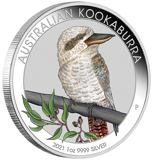 La Kookaburra 1 once d'argent 2021 colorée est une offre unique préparée par The Perth Mint. Cette pièce colorée a été émise à l'occasion du plus grand événement numismatique, le World Money Fair Berlin. La pièce en argent Kookaburra 2021 a été frappée dans un métal pur de titre 9999, d'un poids d'une once et d'un diamètre de 40,9 mm. Elle est émise, comme toujours, par la plus ancienne monnaie australienne, la Perth Mint. La version colorée de la Kookaburra est strictement limitée à 1 500 exemplaires, chaque pièce étant livrée dans un étui accompagné d'un certificat d'authenticité. L'avers de la pièce représente le portrait de la reine Elizabeth II, dessiné par Jody Clark, ainsi que la valeur nominale de la pièce. Le revers représente une image colorée de la Kookaburry.
