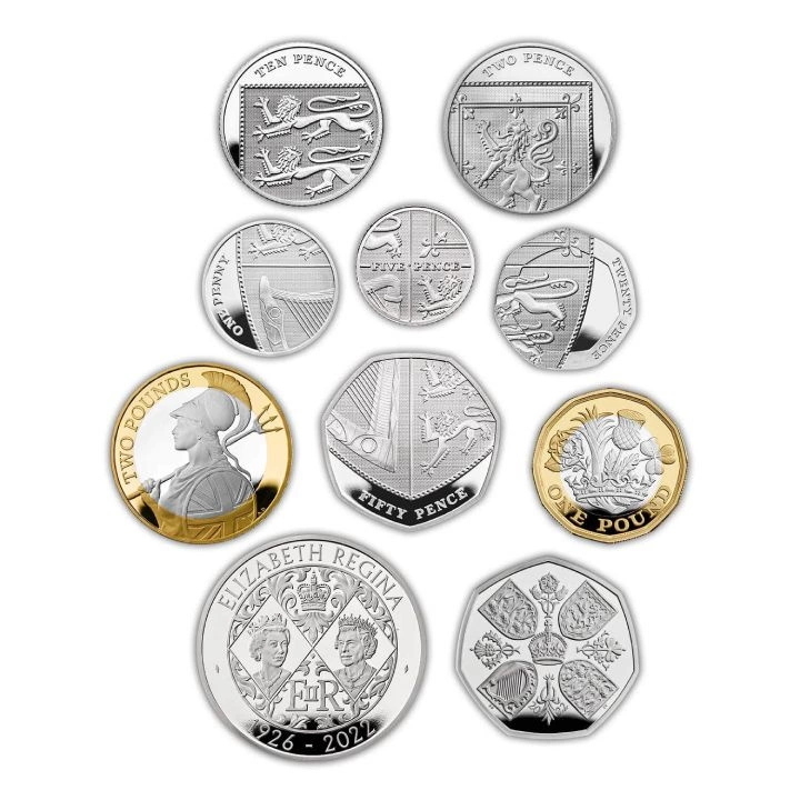 10 darabos készlet Her Majesty Queen Elizabeth ezüst 2022 Proof érmék