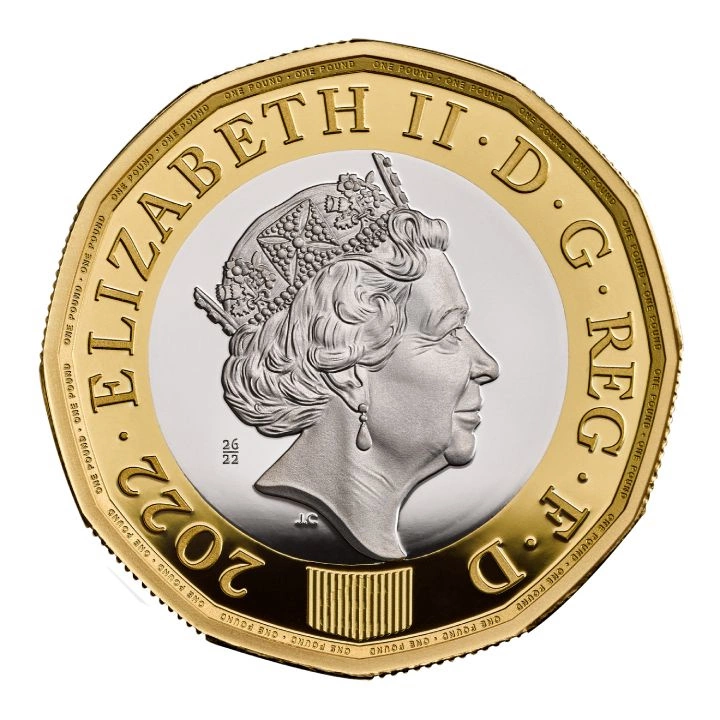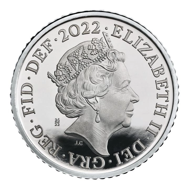 A hátoldalon a 2022-ben vert utolsó brit emlékérmék láthatók, valamint az érme névértékére vonatkozó információk. A hátoldal tervezéséért Antony Dufort, John Bergdahl, David Pearce, Matt Dent, Edgar Fuller és Cecil Thomas felel.