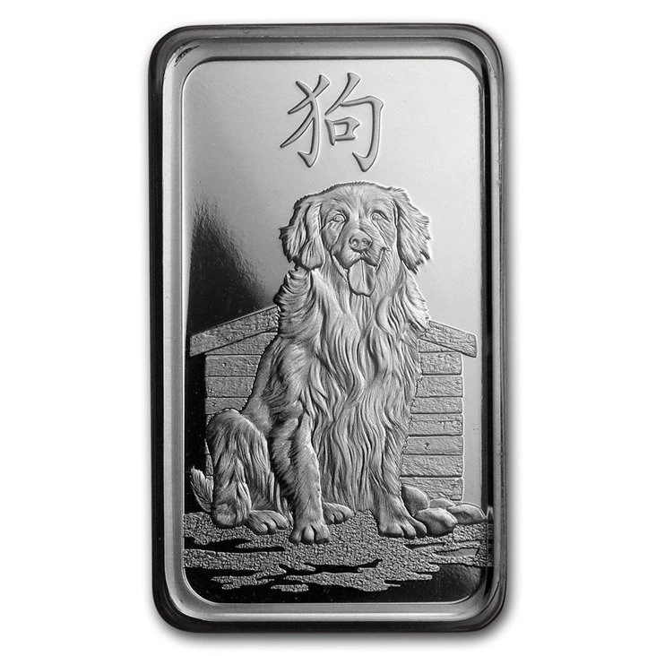 Srebrna sztabka z wizerunkiem księżycowego zwierzęcia jest kolejnym atrakcyjnym wyborem inwestycyjno- prezentowym. Srebrny walor z wizerunkiem Psa został wyprodukowany przez P.A.M.P, jego waga wynosi 10 gramów, a próba srebra 999. Sztabka posiada perfekcyjnym stan menniczy zabezpieczony oryginalnym opakowaniem- certipack. Ten srebrny okaz jest produktem certyfikowanym posiadającym akredytację LBMA.