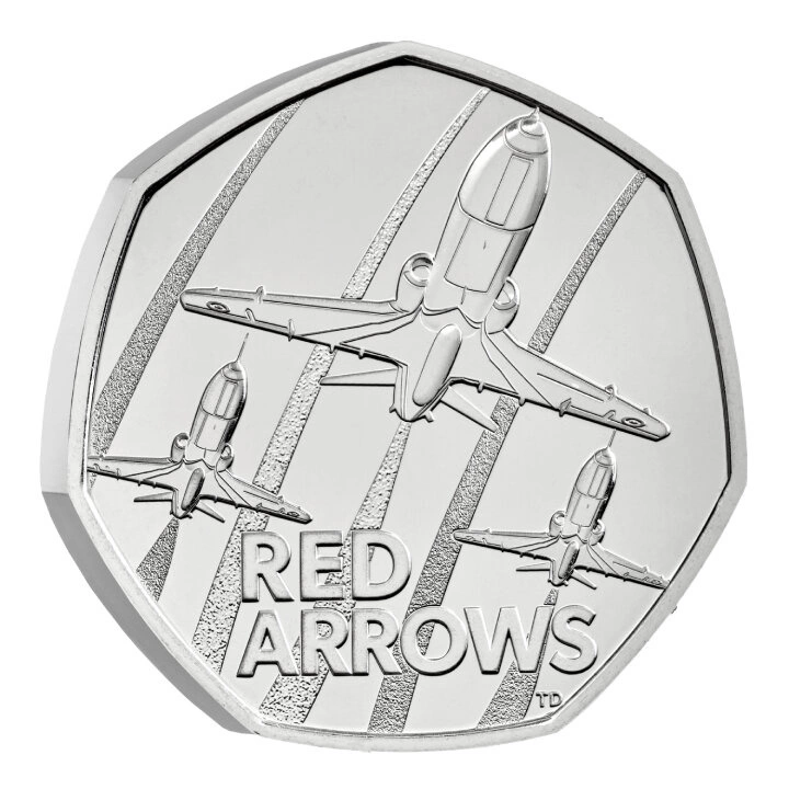 - 50 pennys, forgalomba nem hozott, fényes érme, amely réz-nikkel ötvözetből készült, súlya 8 gramm, átmérője 27,3 mm.