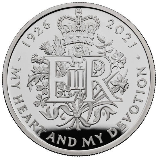 - A királynő 95. születésnapja 5 fontos alapminőségű érméje, az érme réz-nikkel ötvözetből készült, súlya 28,28 gramm, átmérője 38,61 mm, névértéke 5 font.